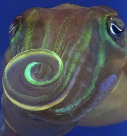 Wenn männliche Tintenfische flirten, dann produzieren sie aufregende Farbmuster im Frontalbereich, um attraktiv zu wirken. Wir kennen das in abgeschwächter Form auch beim Menschen. Möglicherweise handelt es sich beim menschlichen Schminken um einen Atavismus aus der Tintenfischzeit. Der Tintenfisch kann das besser, seine Muster werden laufend aktualisiert und vor allem: er braucht keinen Spiegel! Manche Menschen sehen allerdings geschminkt so aus, als hätten sie keinen gebraucht.