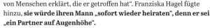 Reh? Braun wie die Augen eines Rehes? Dann hiesse es rehaugenbraune Augen. Natürlich gibt es betörend hübsche Schülerinnen, mit Augen so braun wie die Haselnuss, dann schaut man halt weg. Aber nein, jetzt kommt die Ehefrau und giesst Öl in die rehbraune Glut, indem sie ihren Mann lobt: er sei ein Partner auf Augenhöhe. Das aber ist ja genau das Problem. Ach je, wieder alles verhagelt…halt! No jokes with names – aber den Namen haben wir nicht erwähnt. Zum Glück.
