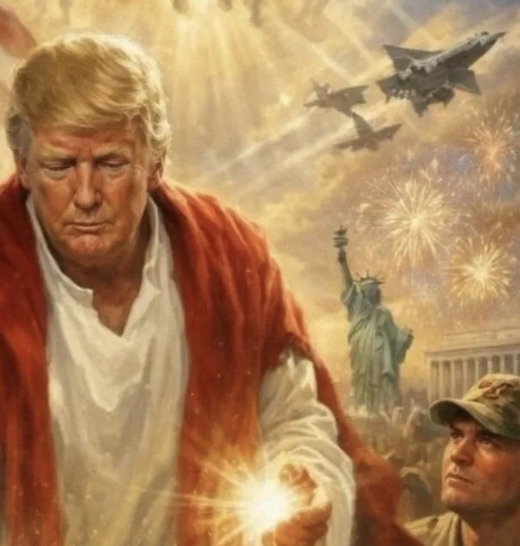 Trump soll sich als Heiland dargestellt haben, das Bild wurde KI generiert und schnell wieder gelöscht. Warum eigentlich? Die KI hat das Kreuzhafte der Heilandsgeschichte schön deutlich dargestellt, mittels der komischen Flugobjekte, die sich gegenseitig da am Himmel kreuz und quer vor allem kreuz den Weg abschneiden. Ein alienartiges Flugobjekt wird gefolgt von einem seltsamen Vogel, der sich nicht entscheiden kann zwischen Tarnkappenbomber und Jumbo, aber schon kommt ein Düsenjäger von rechts heran um die aeronautische Missgeburt vom Himmel zu schubsen. Am und im Himmel herrscht das Gesunde und Schöne und nicht so kranke Konstruktionsfehler. Ist das die Botschaft? Echt? Muss wohl.