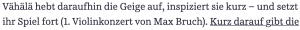 inen autoritären Lehrer-Typ, der bei Verspielern impulsiv reagiert, aber es war scheints ein Versehen. Die teure Geige ging nicht zu Bruch (puh!). Aber sollte man als Geigenspielerin auch so nah am Dirgenten stehen? Gerade bei einem Sück von Max Bruch?