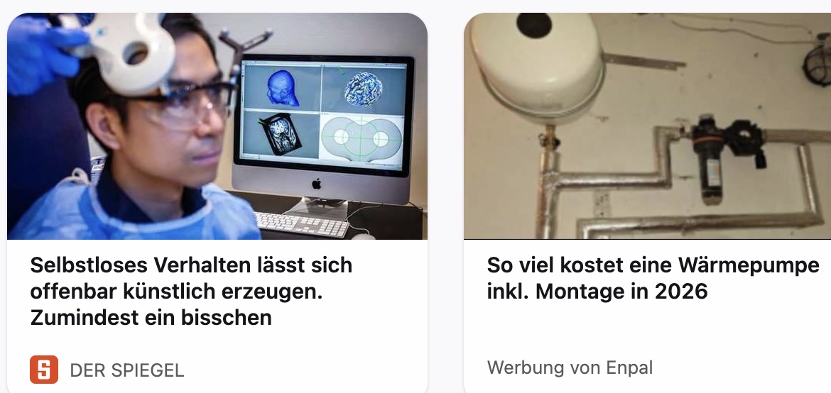 Kreisförmig, hell, mit einem dunklen Loch in der Mitte, so hängts beim einen am Kopf und beim anderen im Keller. Was ist das für ein Pömpel? Und wieso taucht er auf der Browser-Startseite zwischen all den Meldungen auf? Hat die KI hier das Layout noch geometrischen Merkmalen zusammngestellt? Achso, ja dann.